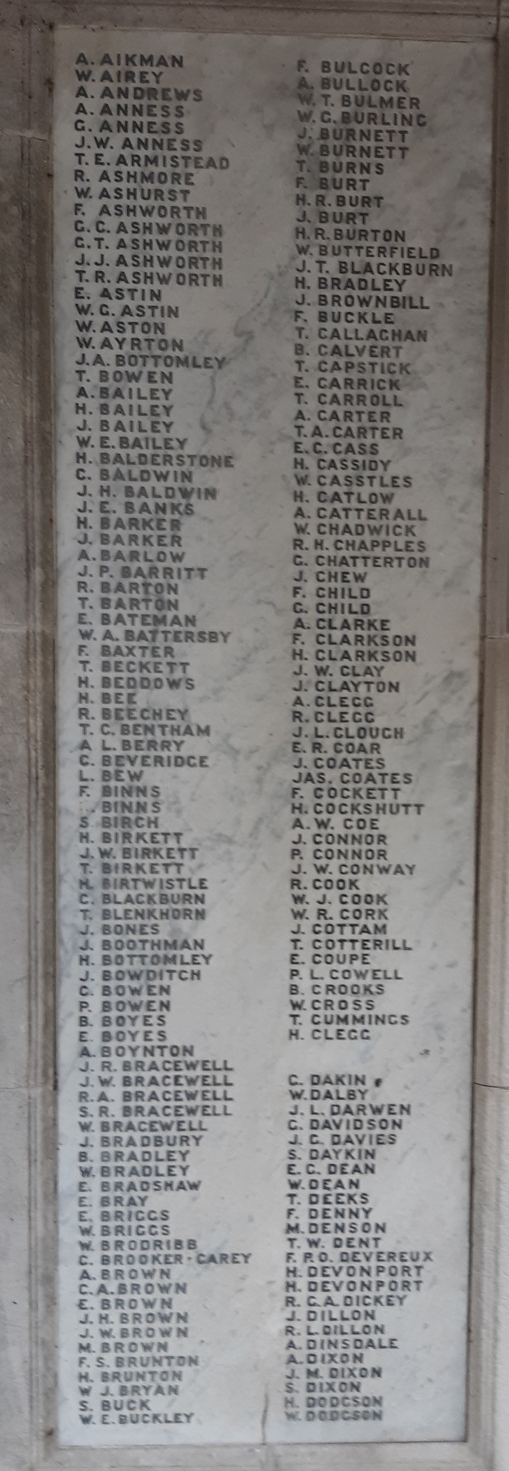 Name Herbert Bottomley Tree Location: Colne War Memorial, Albert Road, Colne, Lancashire Source: Wooster Family Group