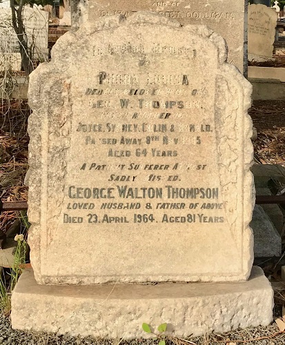 Name Rhoda Louisa Langberg & George Walton Thompson Tree Location: PLOT: Road 2, Path 33, East, Site 20, West Terrace Cemetery, Adelaide, South Australia, Australia Source: Findagrave