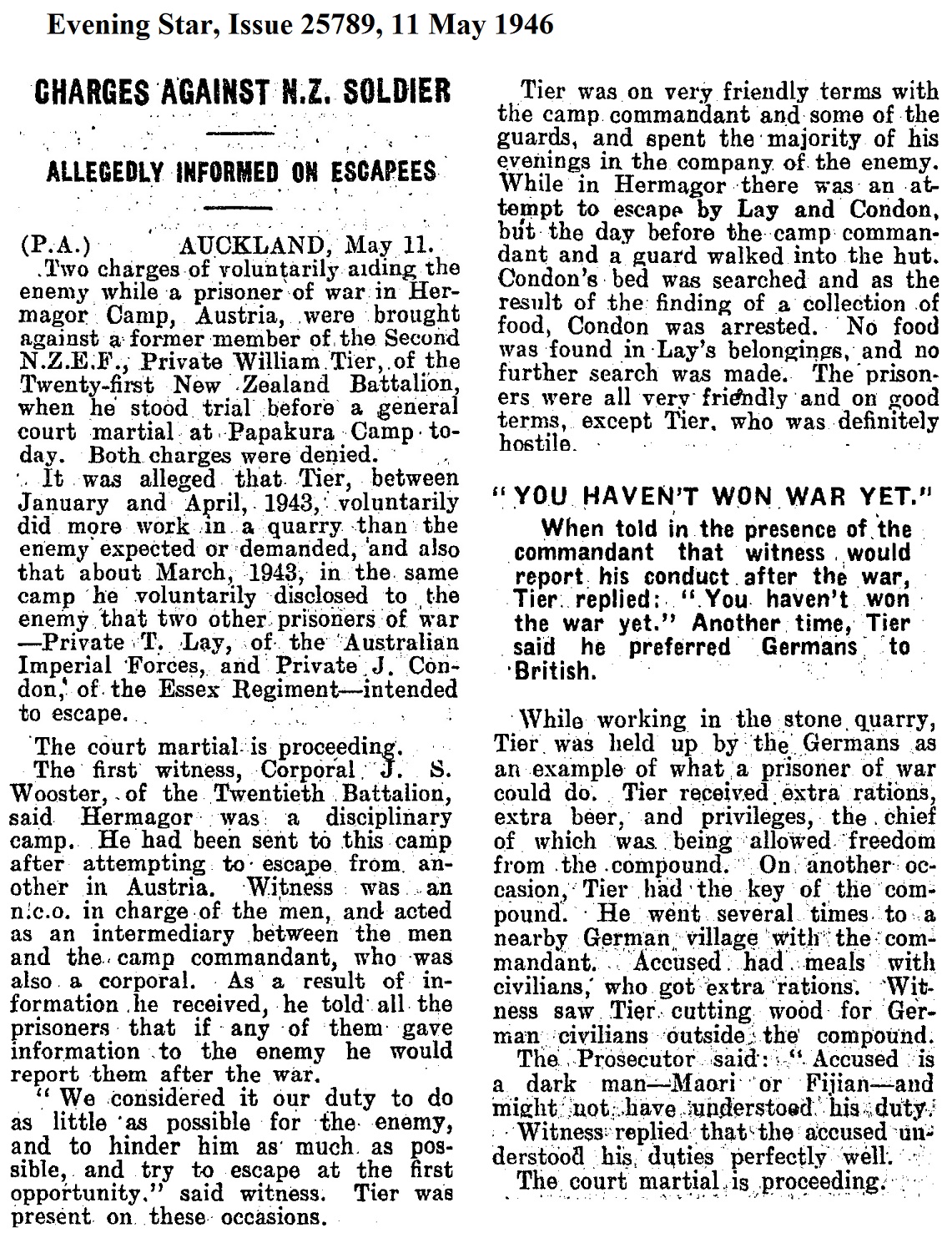 Auckland War Memorial Museum, To the Warrior His Arms, Papers Past (Evening Post, Volume CXL, Issue 41, 17 August 1945), (Auckland Star, Volume LXXVI, Issue 127, 31 May 1941), (Press, Volume LXXXI, Issue 24583, 4 June 1945), Evening Star, Issue 25789, 11 May 1946