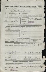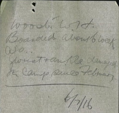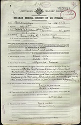 Discharged from Broadmeadows Camp as medically unfit due to a weak wrist and ankle following a broken arm six years earlier and a sprained ankle.